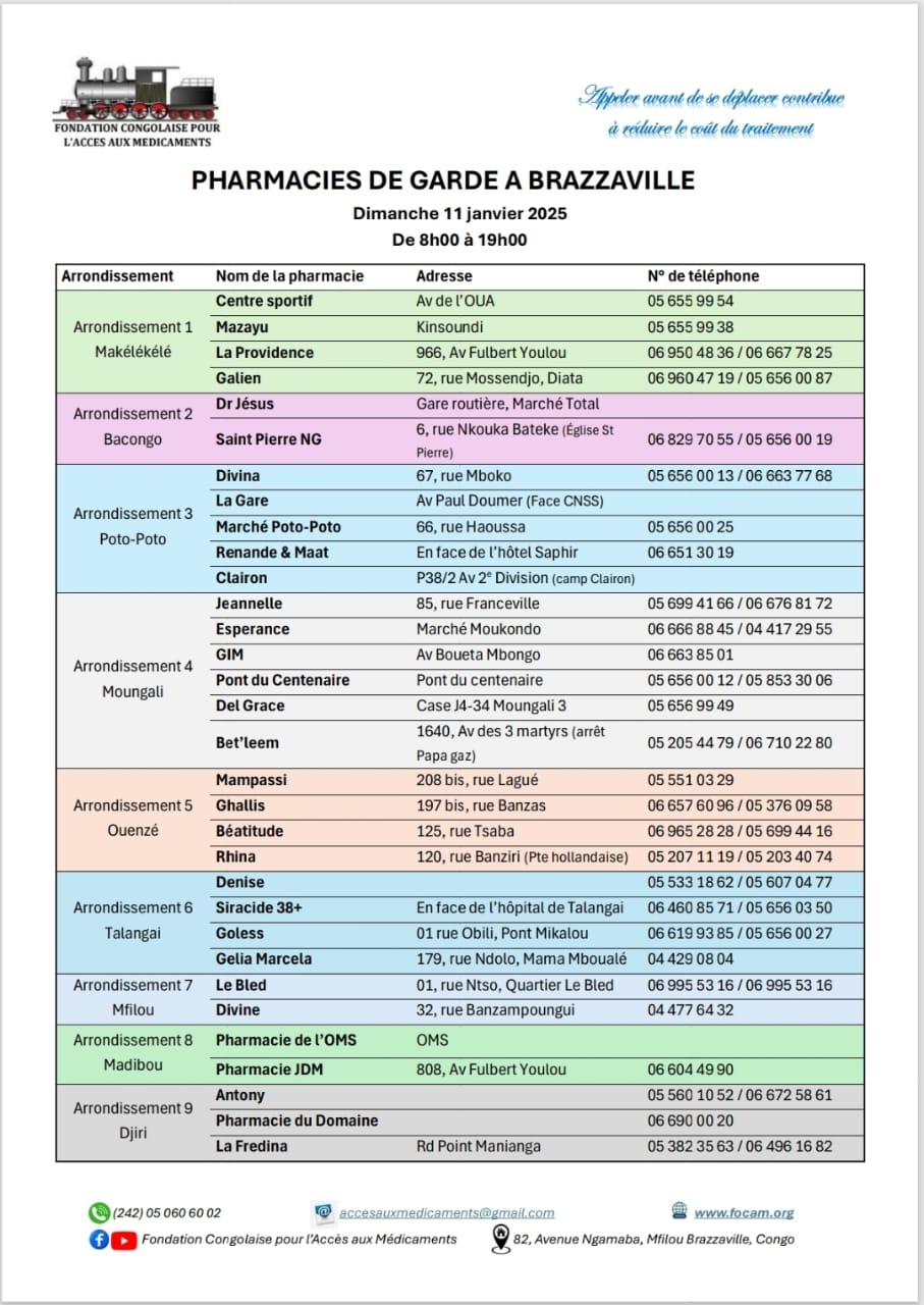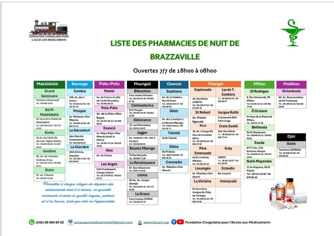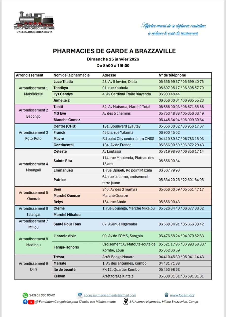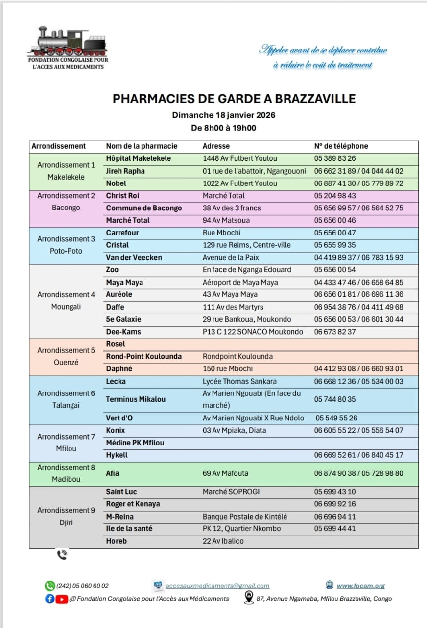 Calendrier des pharmacies de nuit Télécharger le calendrier Partager WhatsApp Facebook X (Twitter) Email Copier le lienCopié ✓ Dimanche 04 janvier 2026 Télécharger le calendrier Partager WhatsApp Facebook X (Twitter) Email Copier le lienCopié ✓ Dimanche 11 janvier 2026 Télécharger le calendrier Partager WhatsApp Facebook X (Twitter) Email Copier le lienCopié ✓ Dimanche 18 janvier 2026 Télécharger le calendrier Partager WhatsApp Facebook X (Twitter) Email Copier le lienCopié ✓ Dimanche 25 janvier 2026 Télécharger le calendrier Partager WhatsApp Facebook X (Twitter) Email Copier le lienCopié ✓ Nous Contacter Pour plus d’informations contactez-nous via nos réseaux officiels ou via notre formulaire de contact. Facebook Whatsapp Youtube Envelope Formulaire de ContactNomPrénomEmailTéléphoneObjet du message Votre message Envoyer
