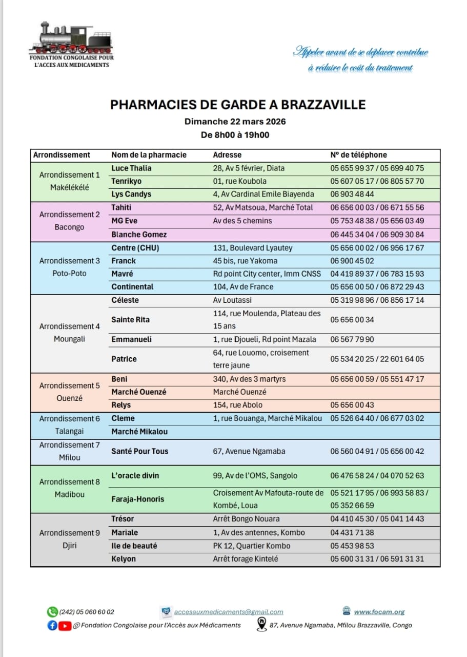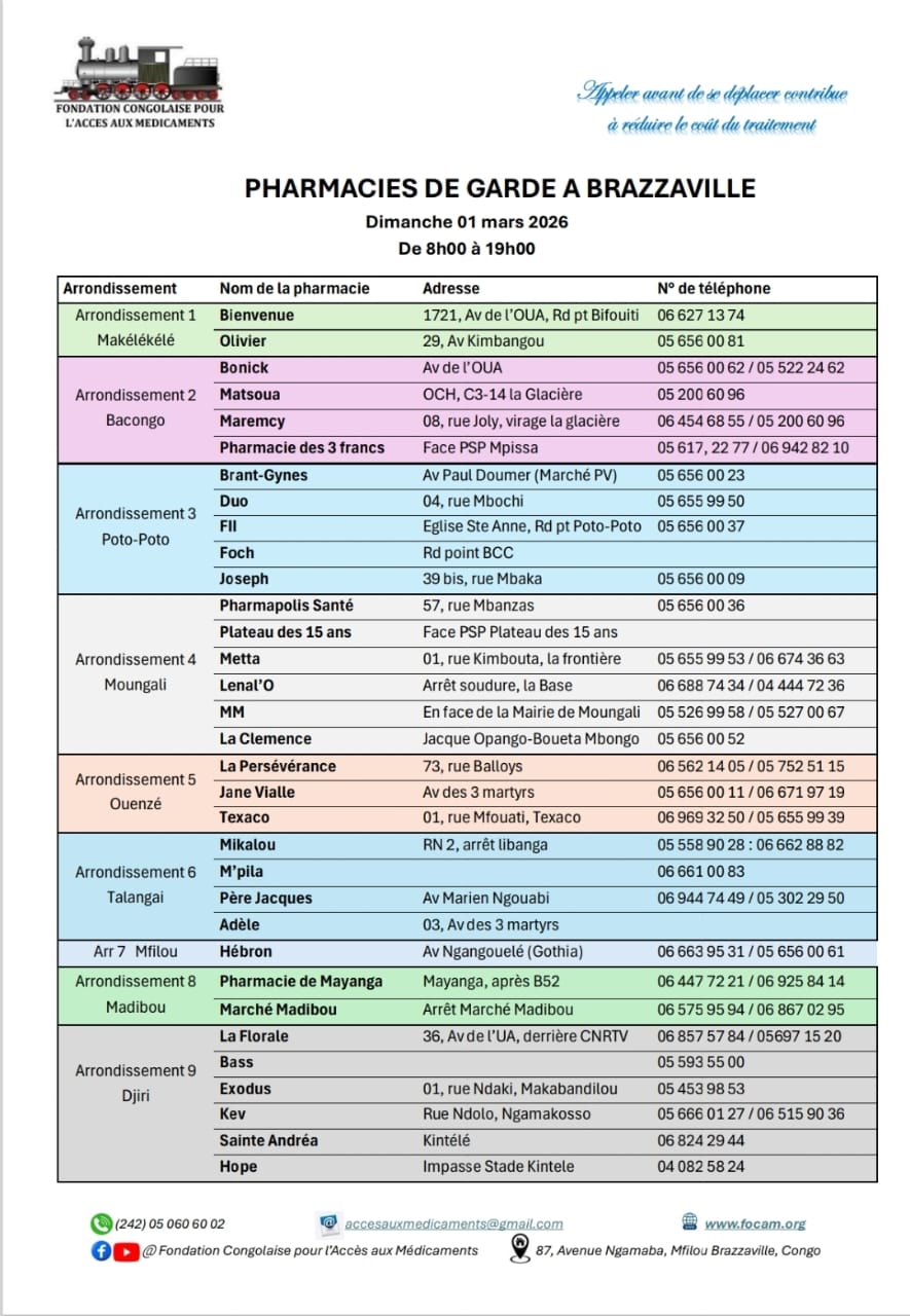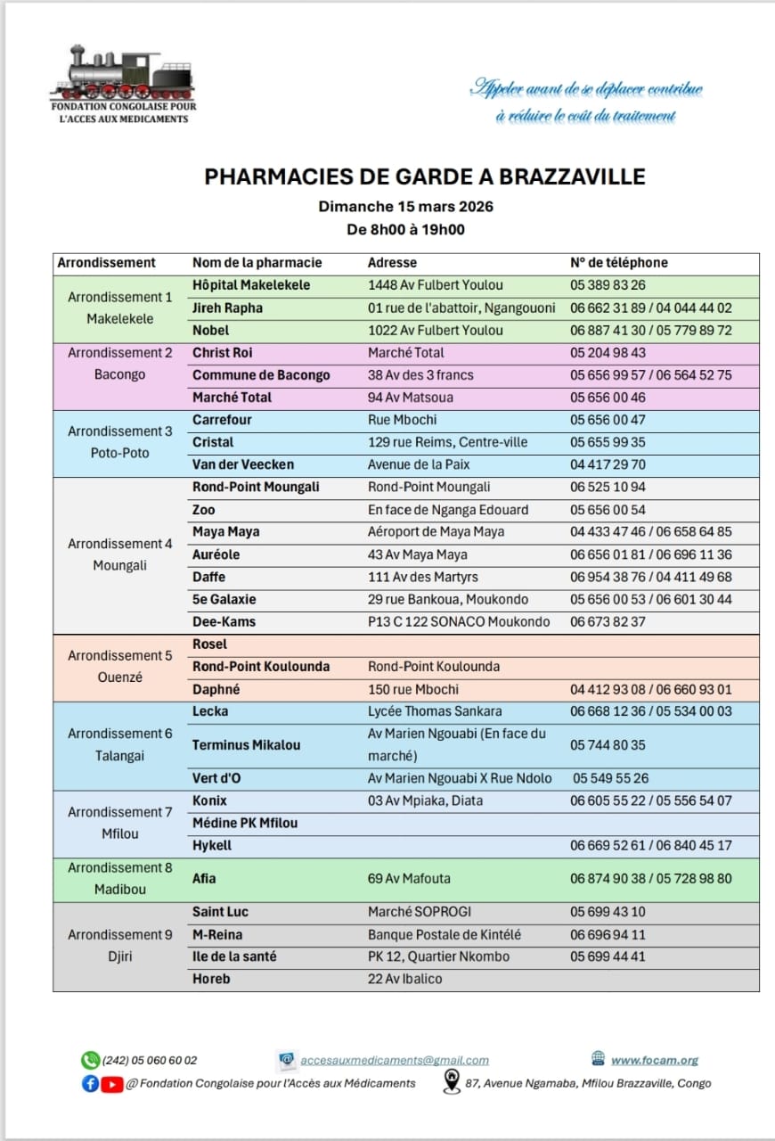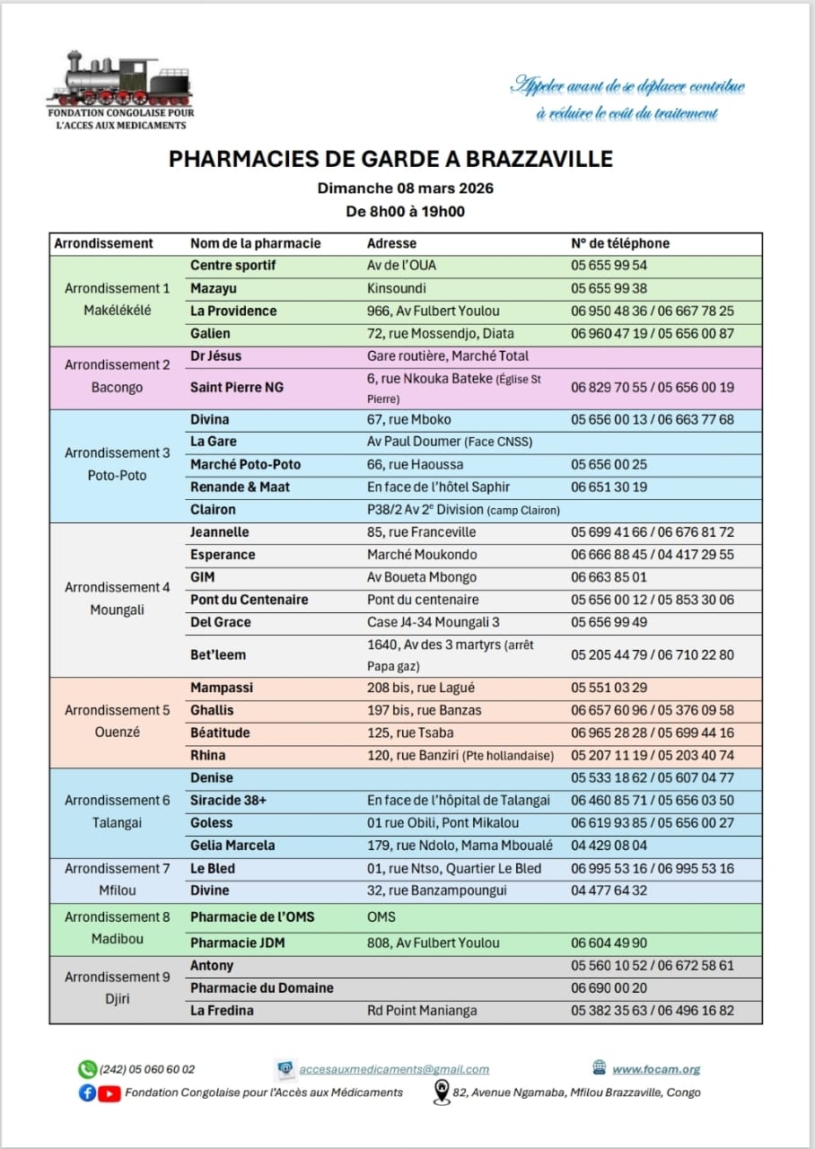 Calendrier des pharmacies de nuit Télécharger le calendrier Partager WhatsApp Facebook X (Twitter) Email Copier le lienCopié ✓ Dimanche 01 mars 2026 Télécharger le calendrier Partager WhatsApp Facebook X (Twitter) Email Copier le lienCopié ✓ Dimanche 08 mars 2026 Télécharger le calendrier Partager WhatsApp Facebook X (Twitter) Email Copier le lienCopié ✓ Dimanche 15 mars 2026 Télécharger le calendrier Partager WhatsApp Facebook X (Twitter) Email Copier le lienCopié ✓ Dimanche 22 mars 2026 Télécharger le calendrier Partager WhatsApp Facebook X (Twitter) Email Copier le lienCopié ✓ Dimanche 29 mars 2026 Télécharger le calendrier Partager WhatsApp Facebook X (Twitter) Email Copier le lienCopié ✓ Nous Contacter Pour plus d’informations contactez-nous via nos réseaux officiels ou via notre formulaire de contact. Facebook Whatsapp Youtube Envelope Formulaire de ContactNomPrénomEmailTéléphoneObjet du message Votre message Envoyer